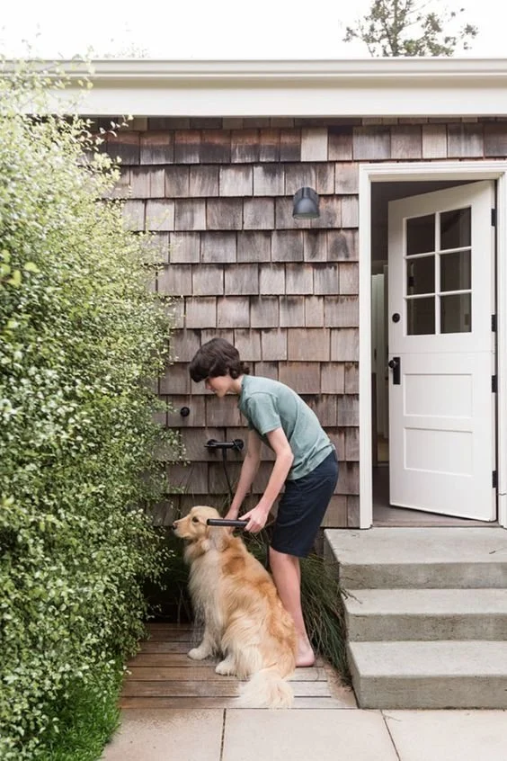 Butcher Block Countertop: A durable built in surface placed above the washer and dryer, perfect for folding and additional workspace.